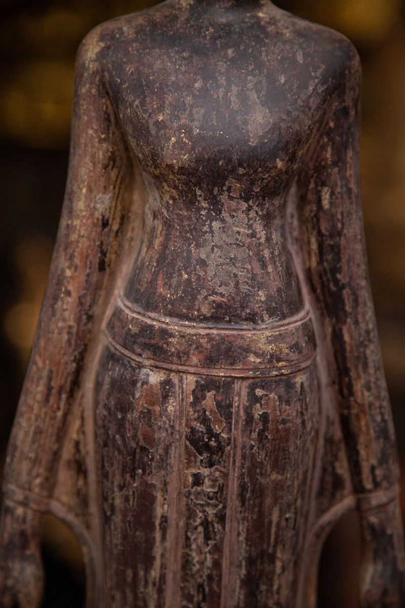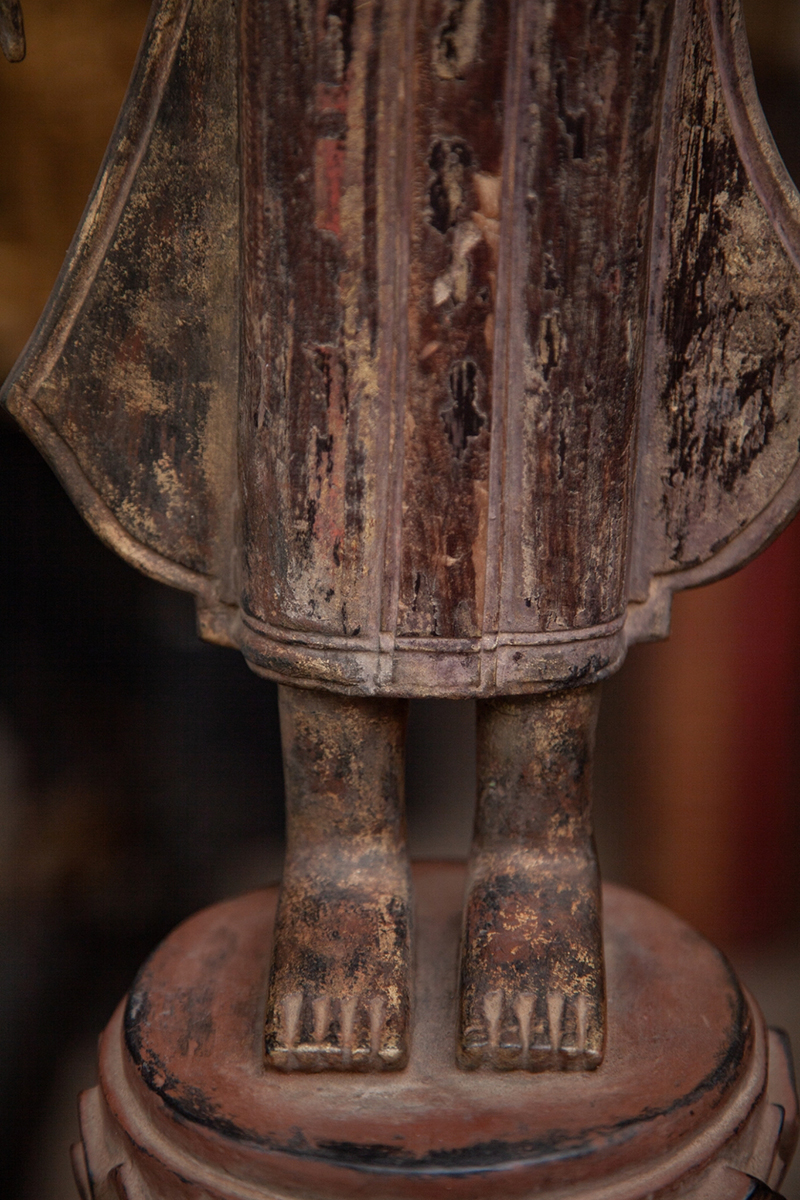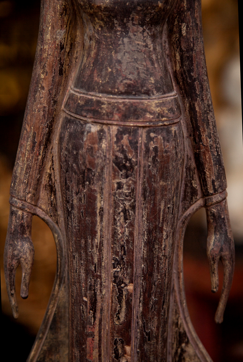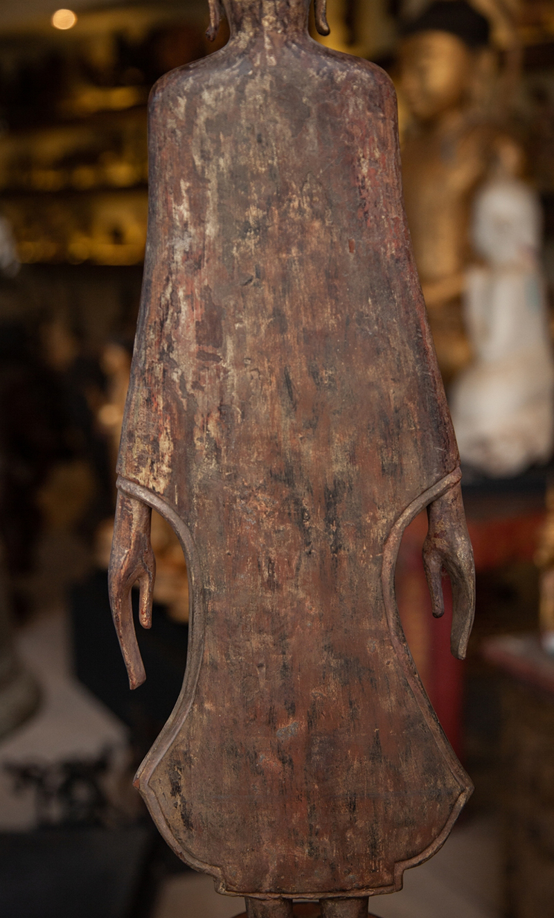 Extremely Rare 18C Wood Standing Laos Buddha #099-2 |