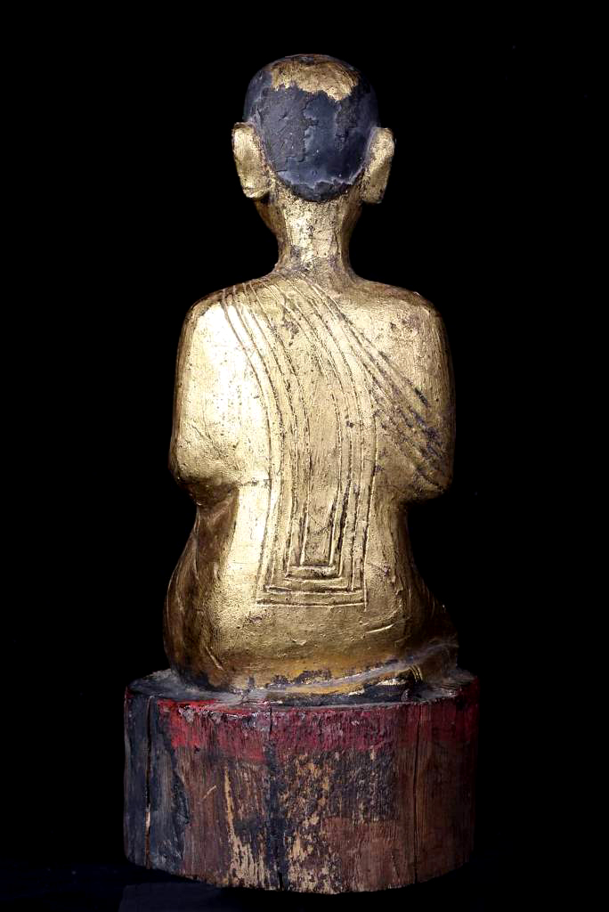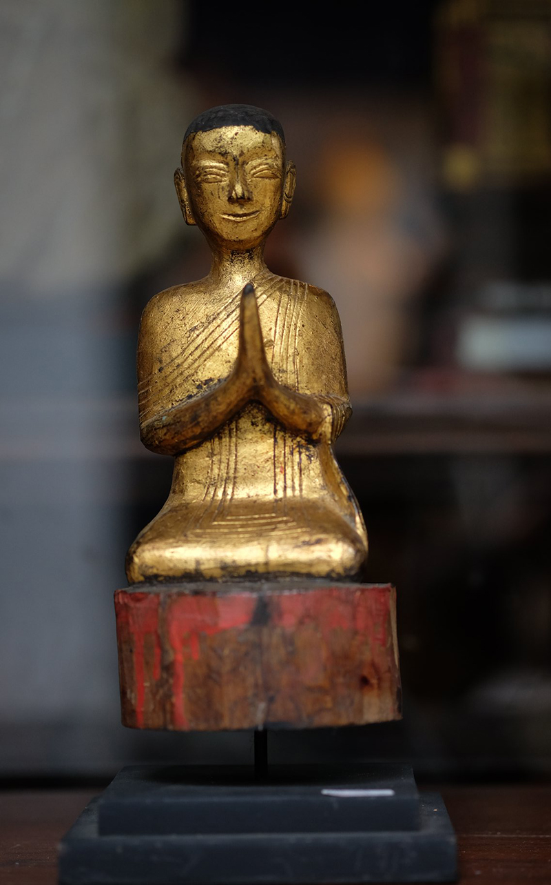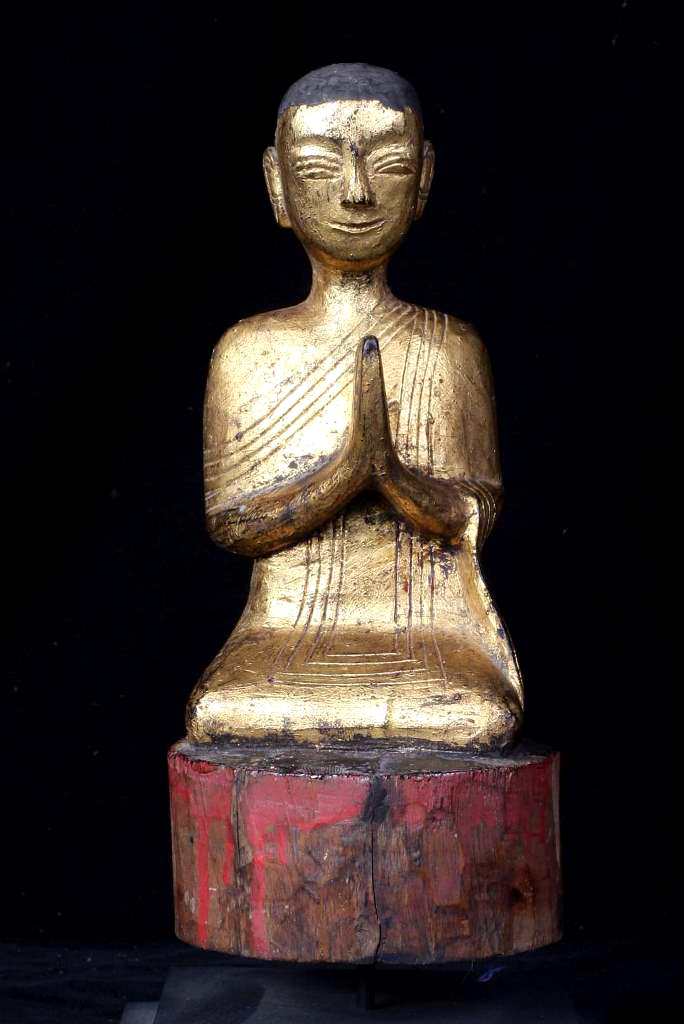 Buddhist monk/s usually found in pairs and placed either side of a central Buddha