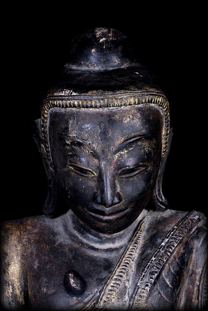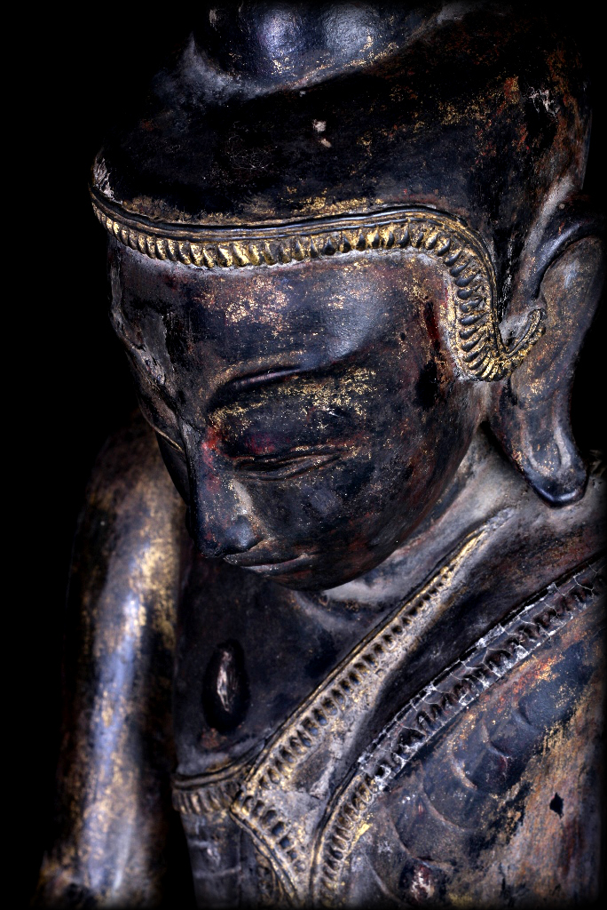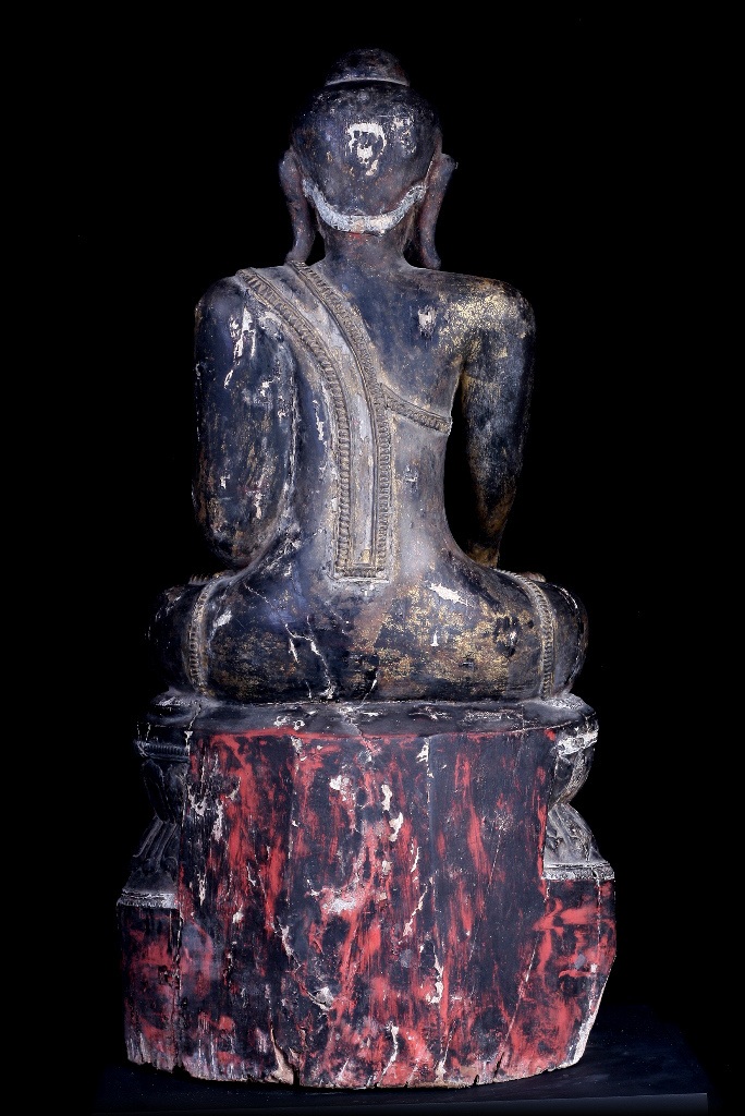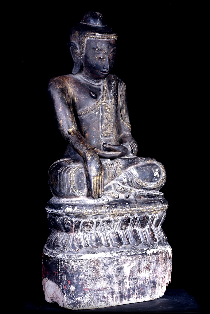 18C Wood Sitting Mon Burmese Buddha # A039
