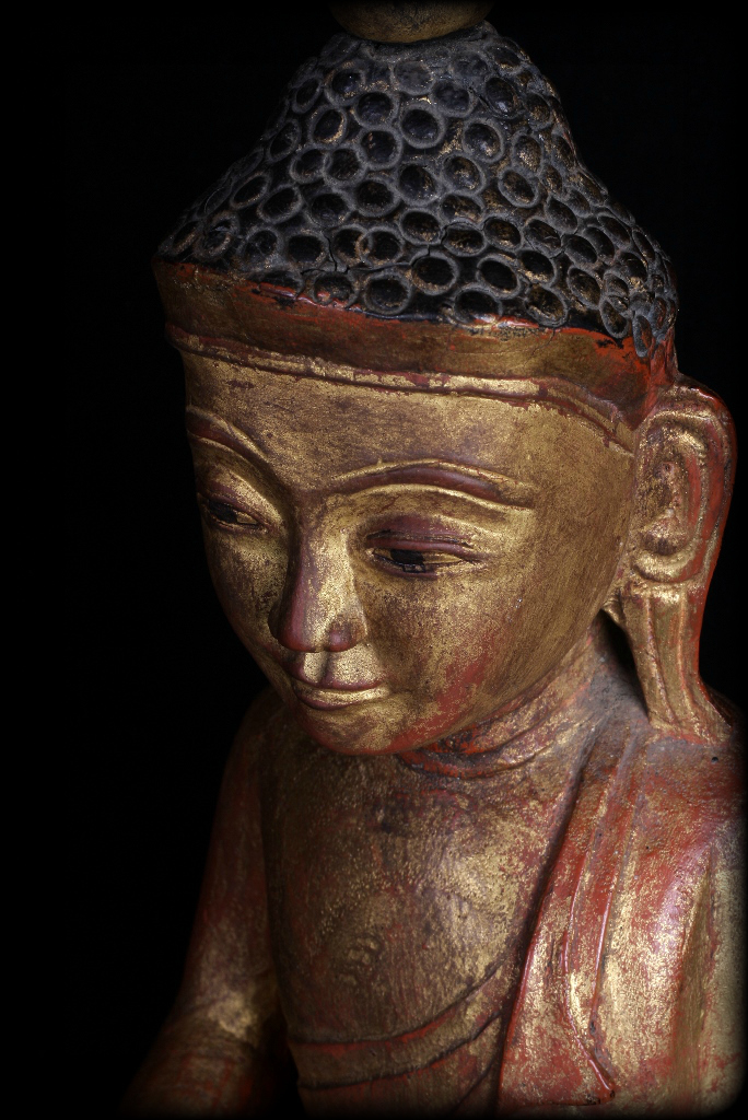 Extremely Rare 19C Wood Burmese Shan Buddha #A041 |