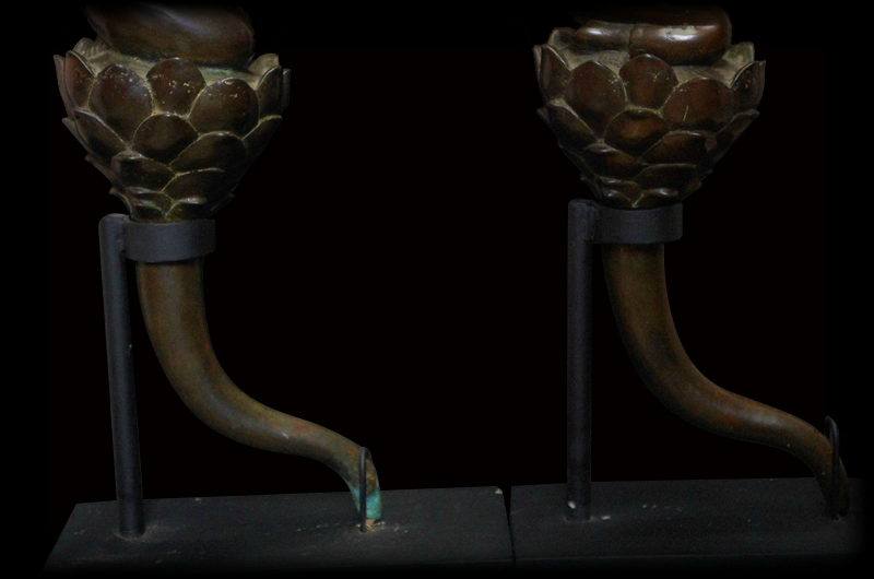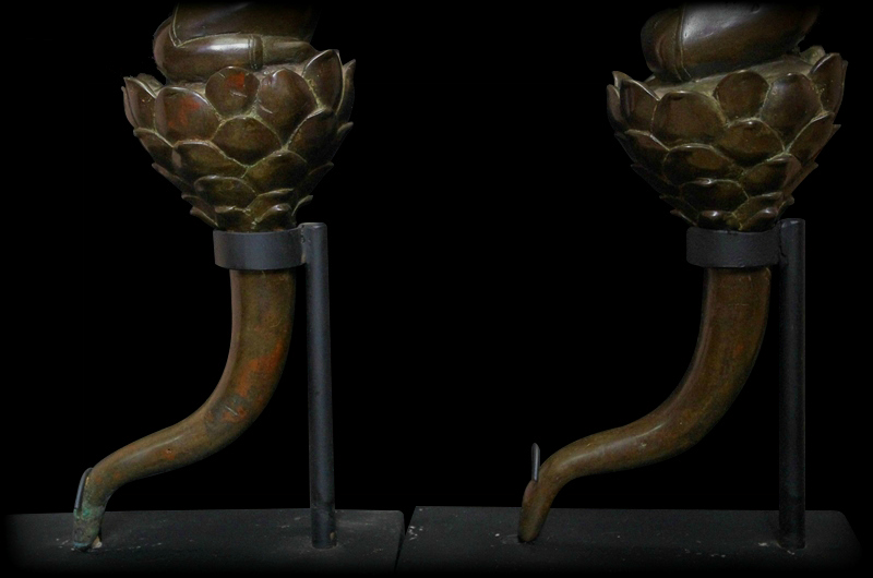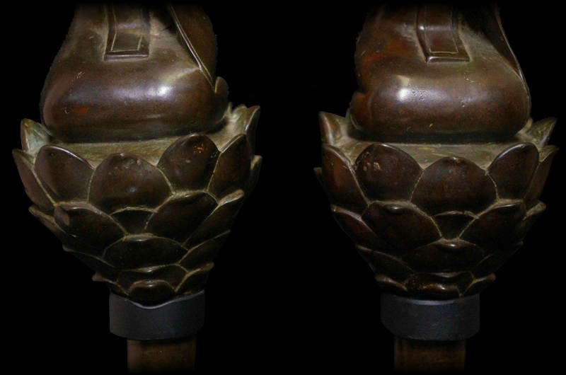 Buddhist monk/s usually found in pairs and placed either side of a central Buddha