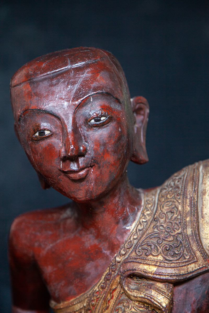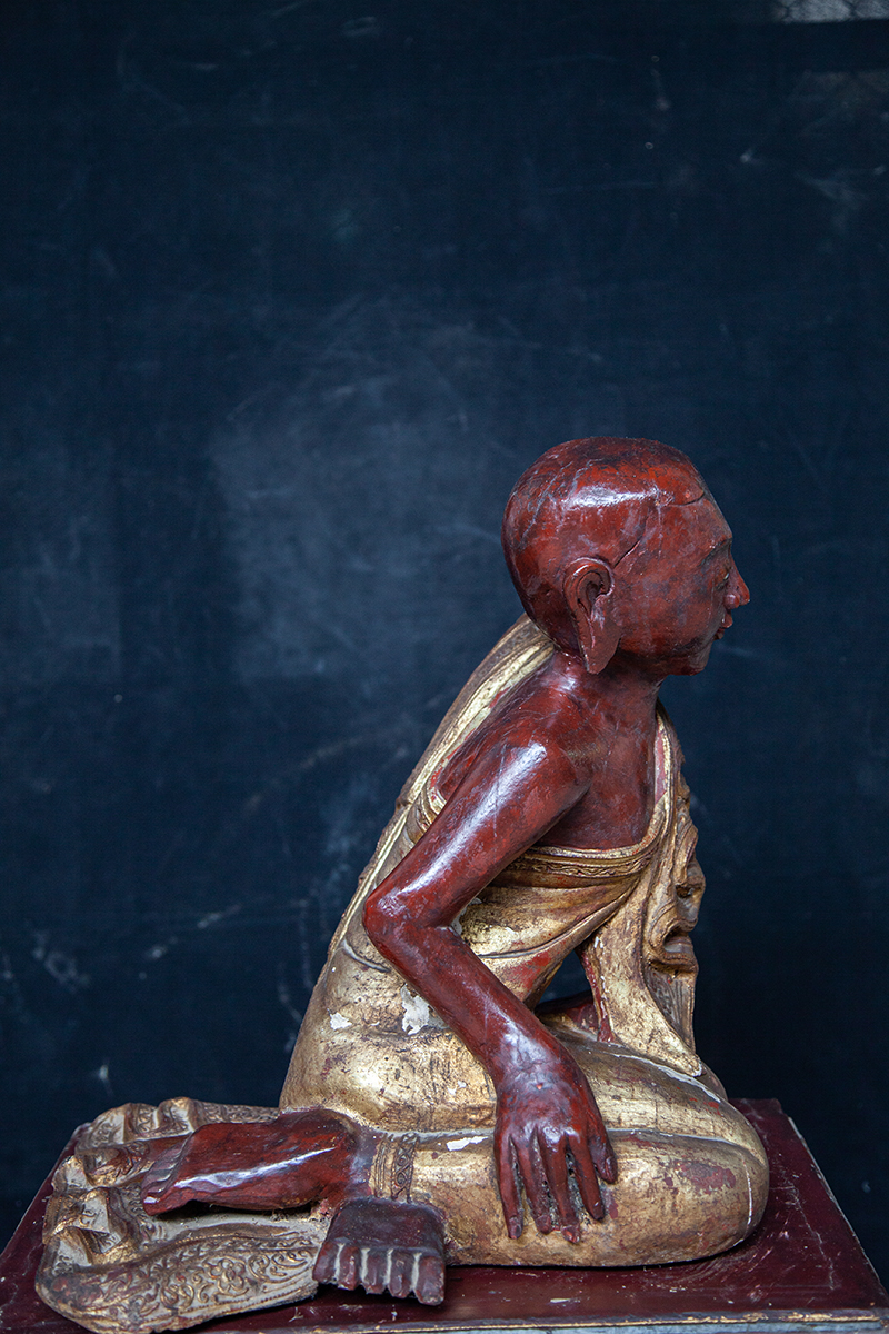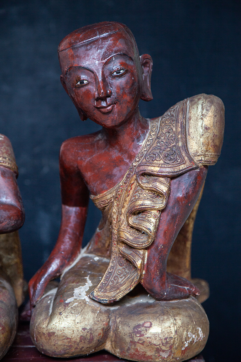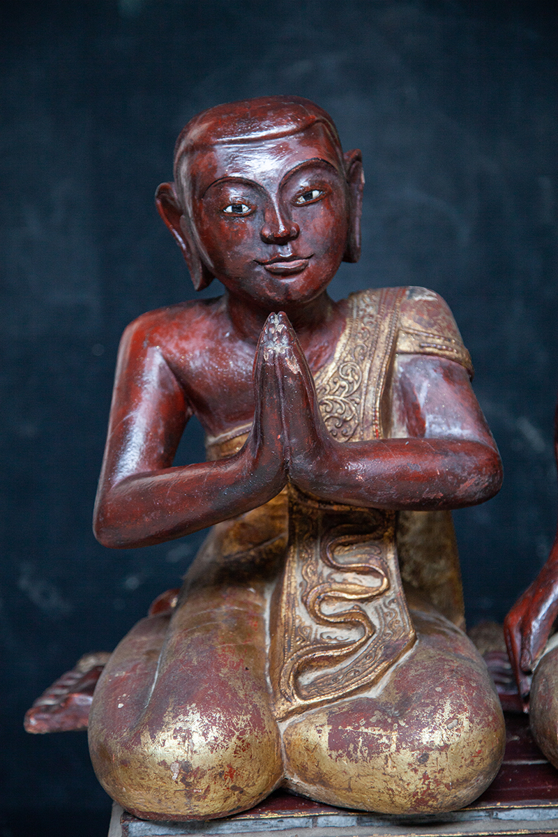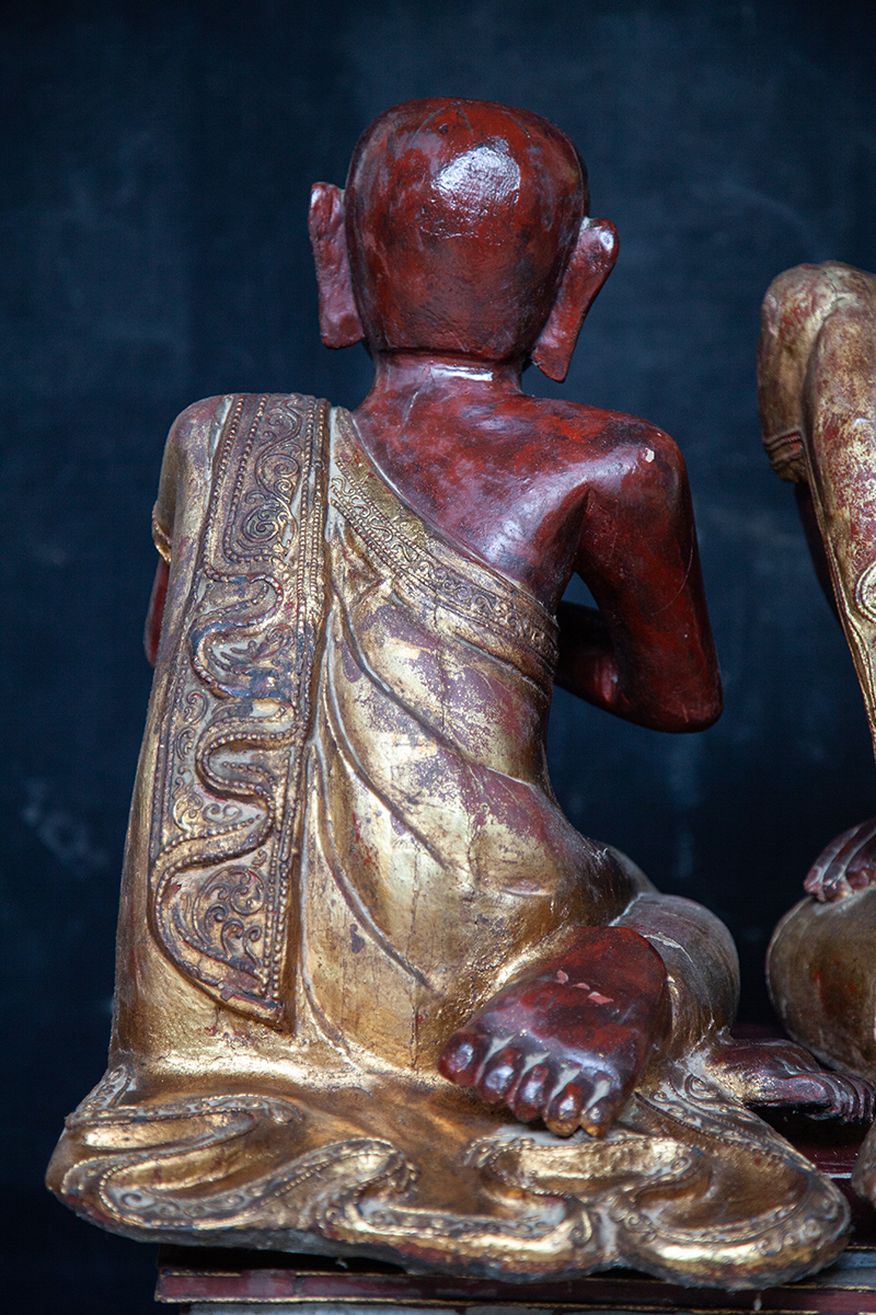 Pair Of 19C Mandalay Burmese Buddhist Monks #LA02