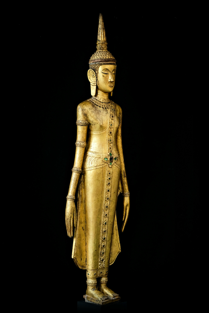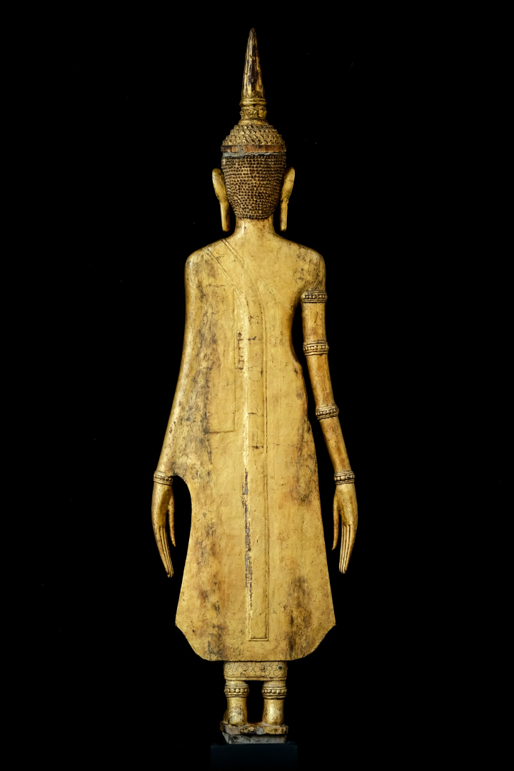Extremely Rare 18C Wood Standing Laos Buddha #CH210 |