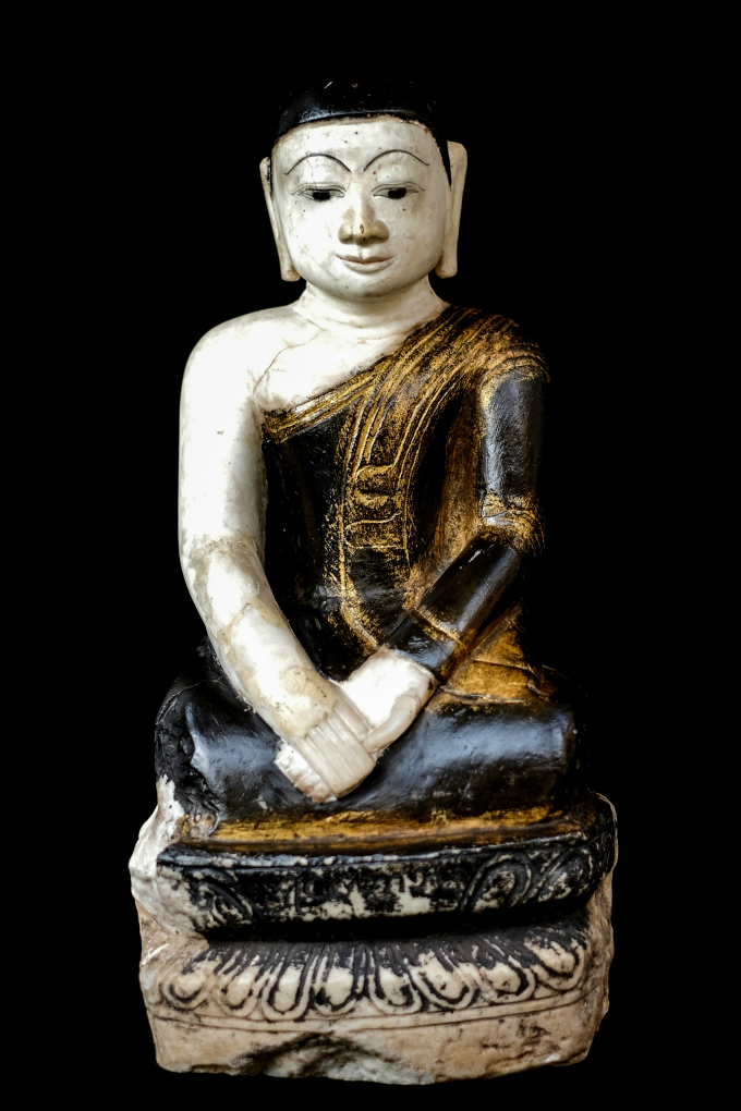 Burmese Buddhist monk/s usually found in pairs and placed either side of a central Buddha image.
