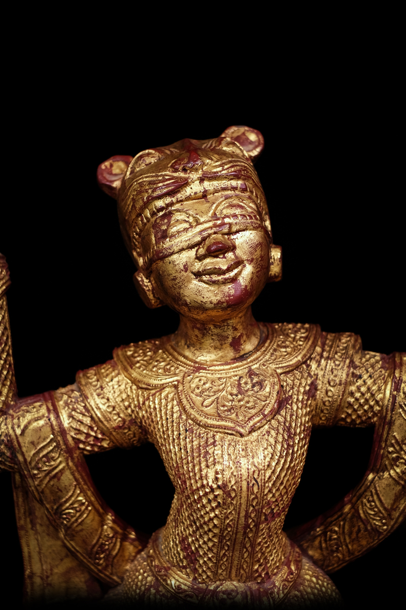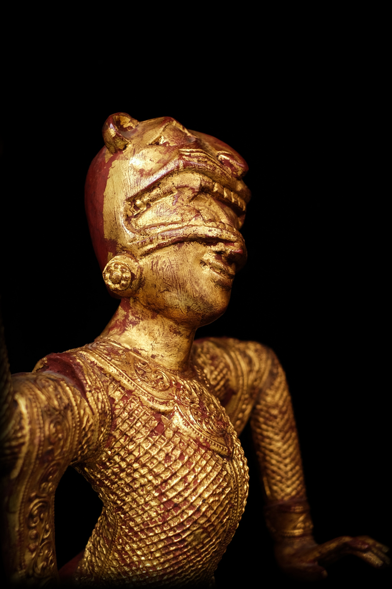A Pair of 19C Wood Burmese Nat Sculpture #DW1002
