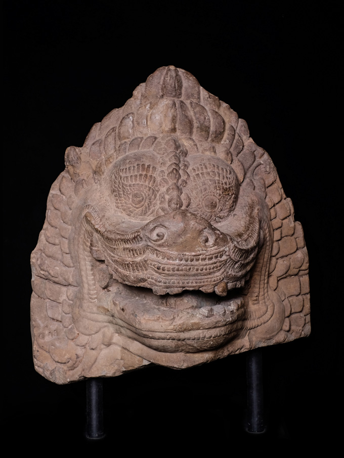 Extremely Rare 10C Sandstone Khmer Pair Of Guardian Lion Head #K.2604 |