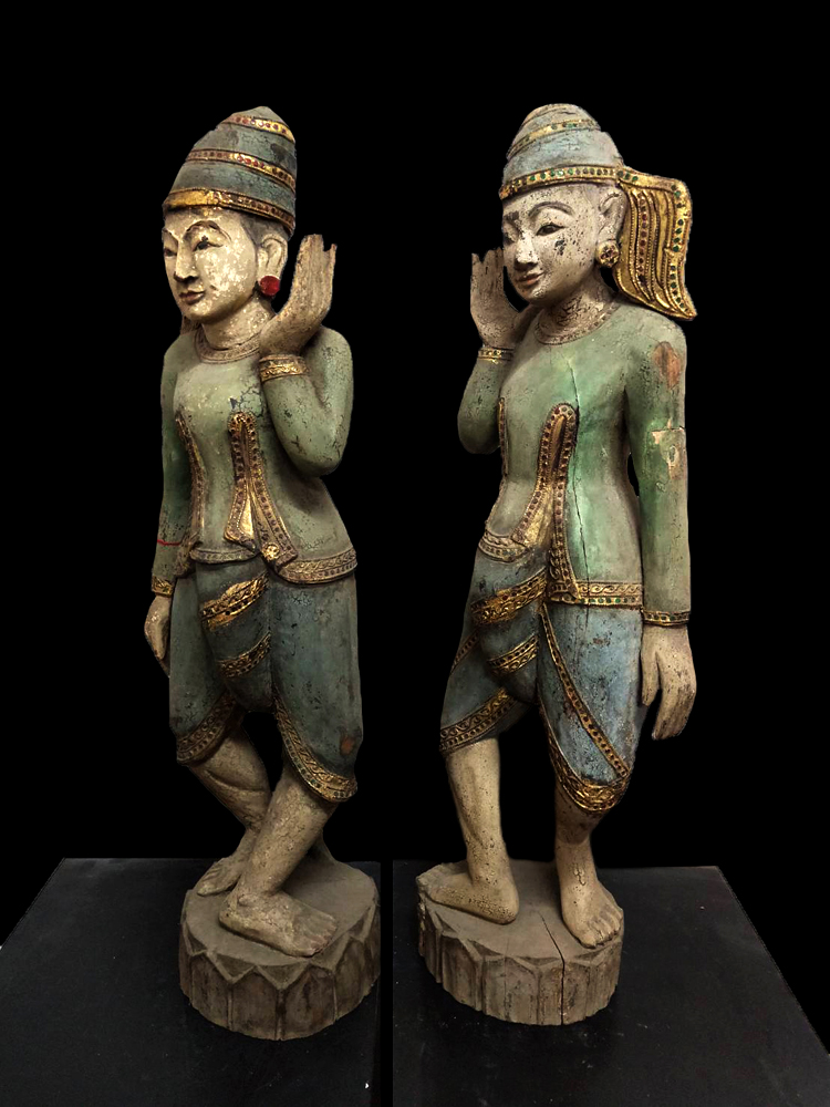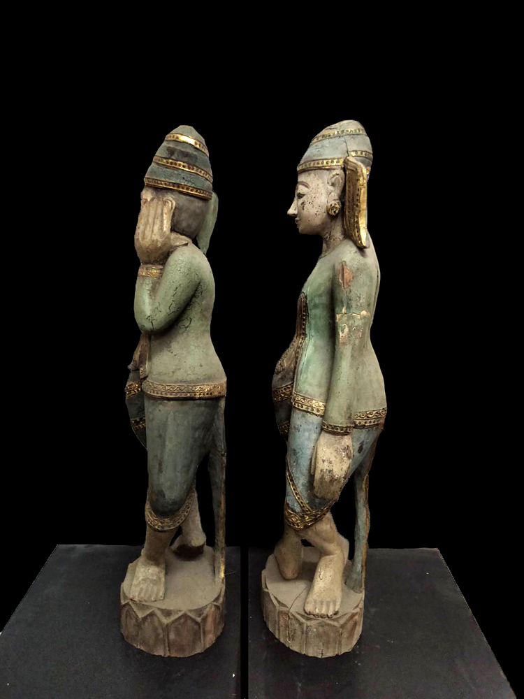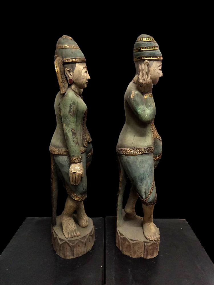 Rare Pair of 19C Wood Burmese Sculpture #OF100