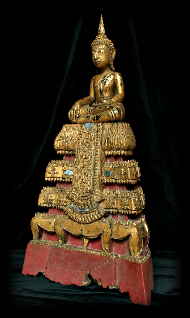 Extremely Rare 18C Wood Thai Ayuttaya Buddha #OF-150 |