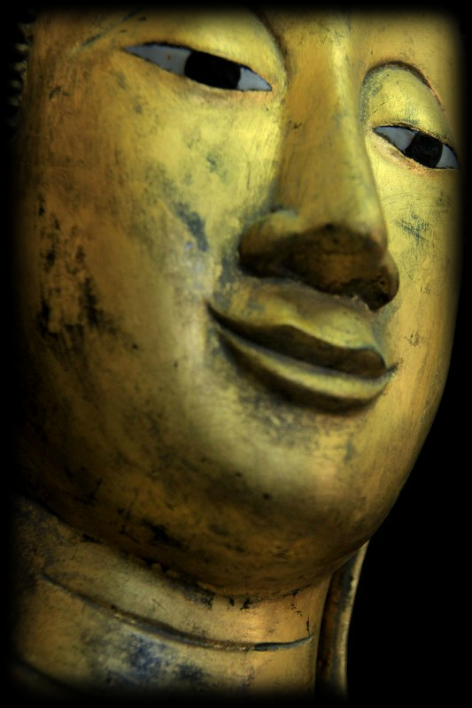 By www.antiquebuddhas.com CLICK ON THE CURSOR TO ZOOM IN ON ANY PART OF THIS OBJECT VIEW CLOSE UP - Extremely Rare 18C Standing Wood Laos Buddha #BB80