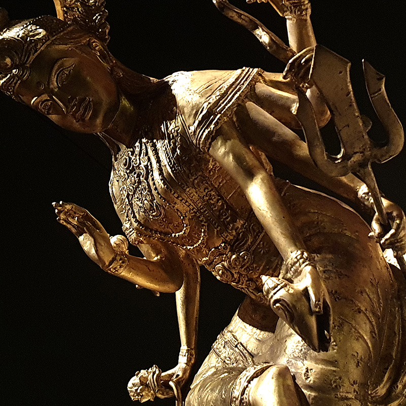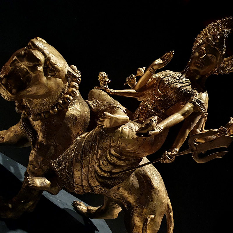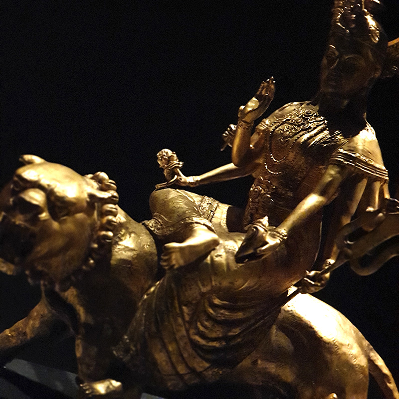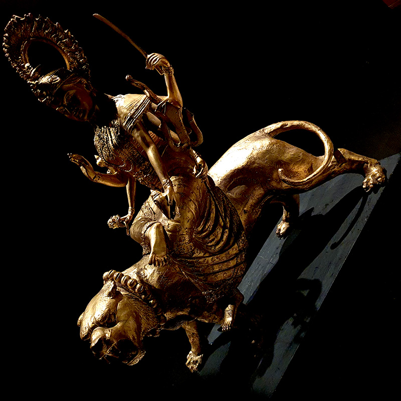Early 20C Goddess Umadevi Riding on Tiger Statue #CA1079