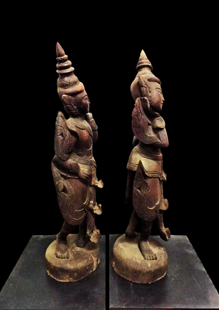 Rare Pair of 19C Wood Burmese Sculpture #CA1098
